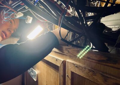 – Vi installerer det elektroniske utstyret om bord, og dette innebærer, radio, antenner, nødpeilesendere og radar – egentlig alt med som har med strøm å gjøre, sier Unhammer.